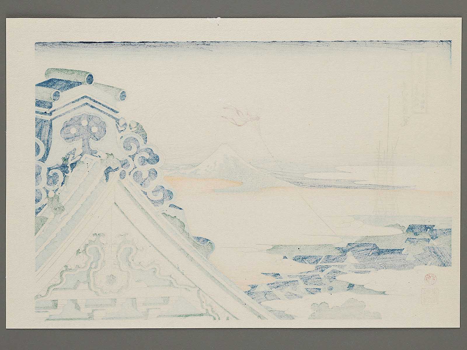 This work is a reproduction of a woodblock print, made with the same traditional printmaking processes as those used when the original was created.