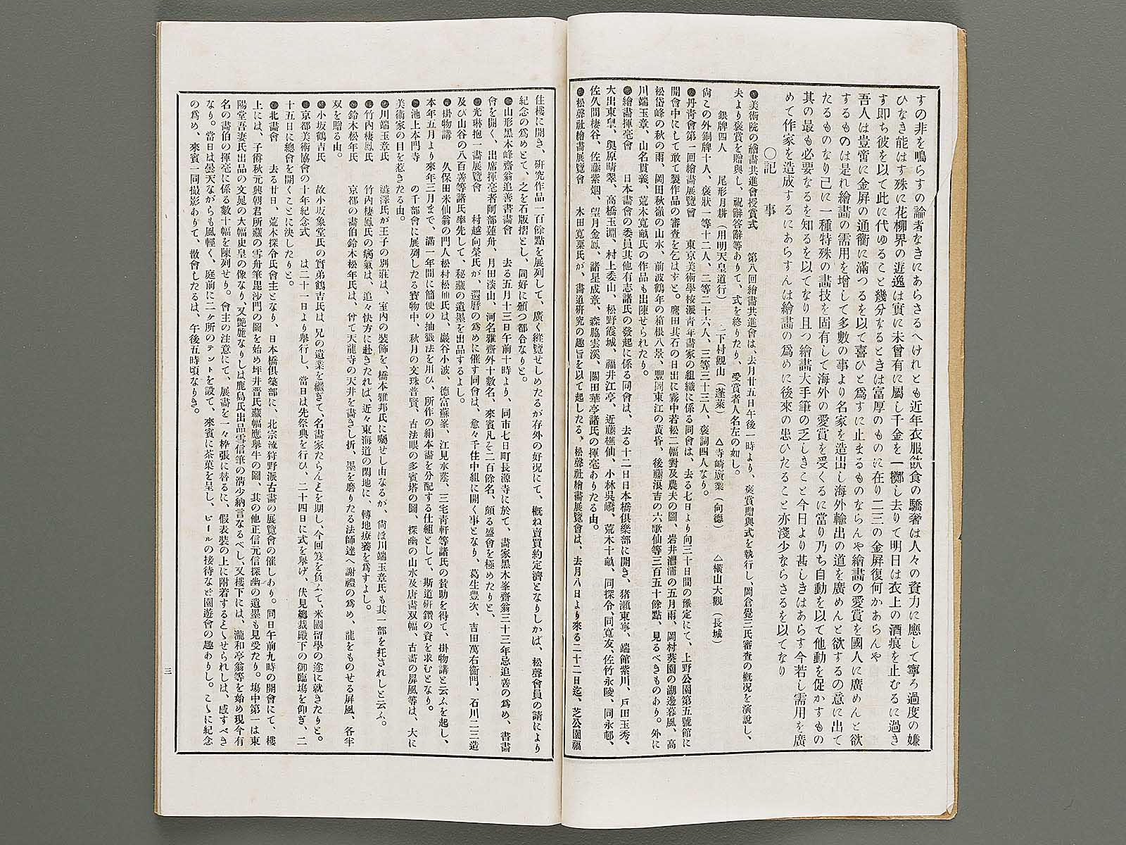Topic : The official newspaper of Toyo kaiga kai. It contains illustrations by famous painters and articles about exhibitions and Western painting.