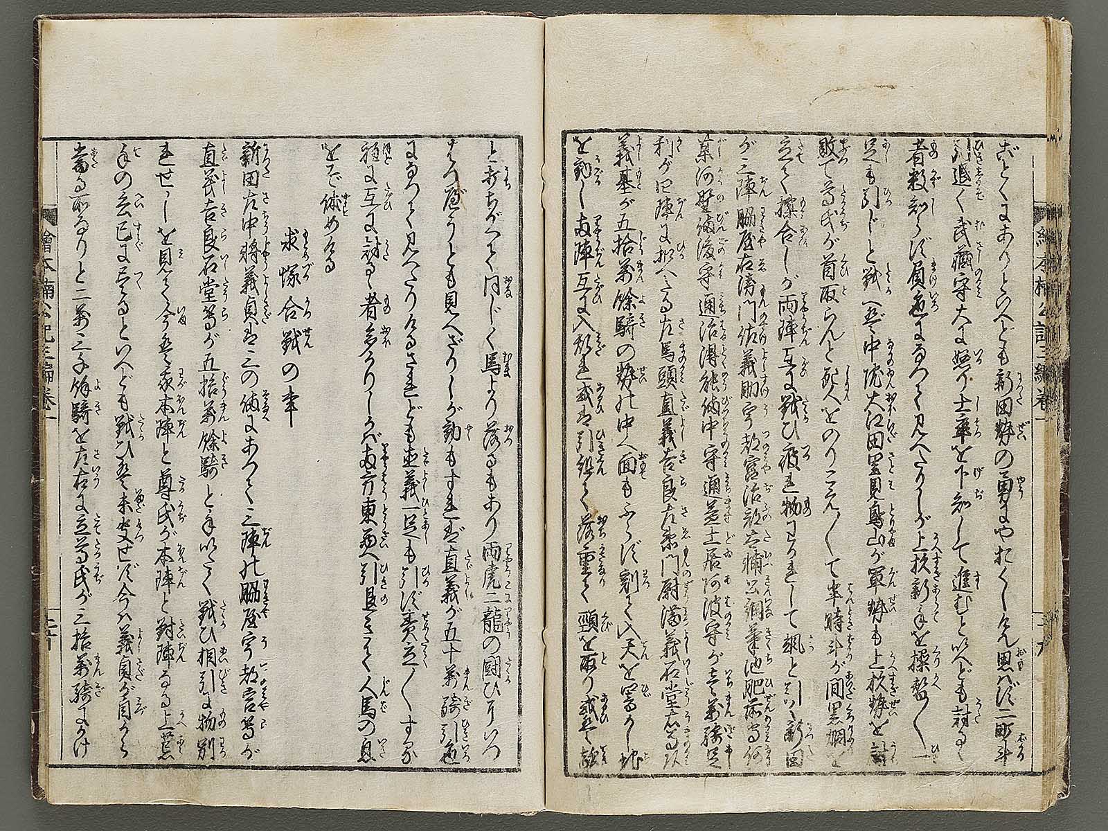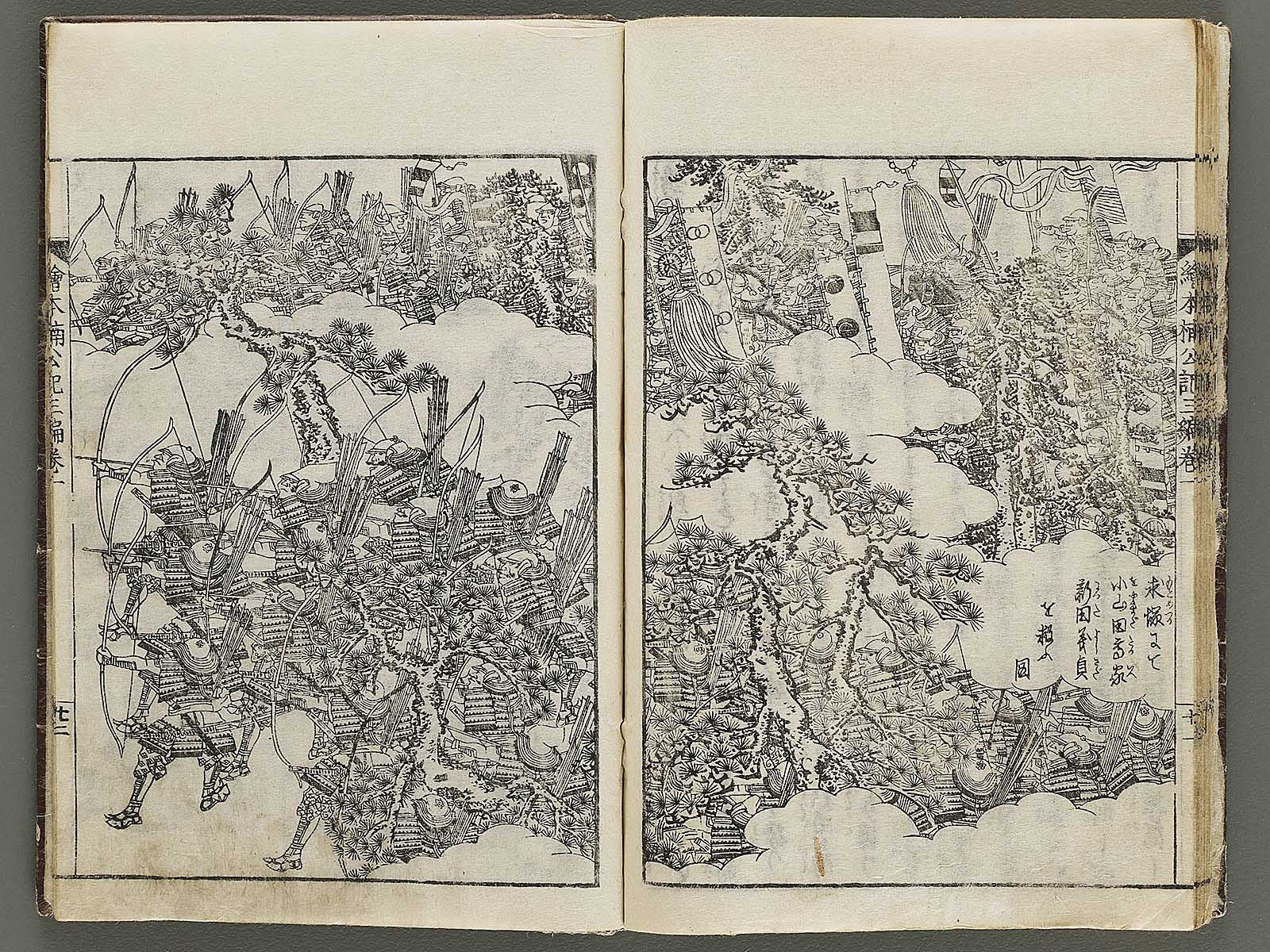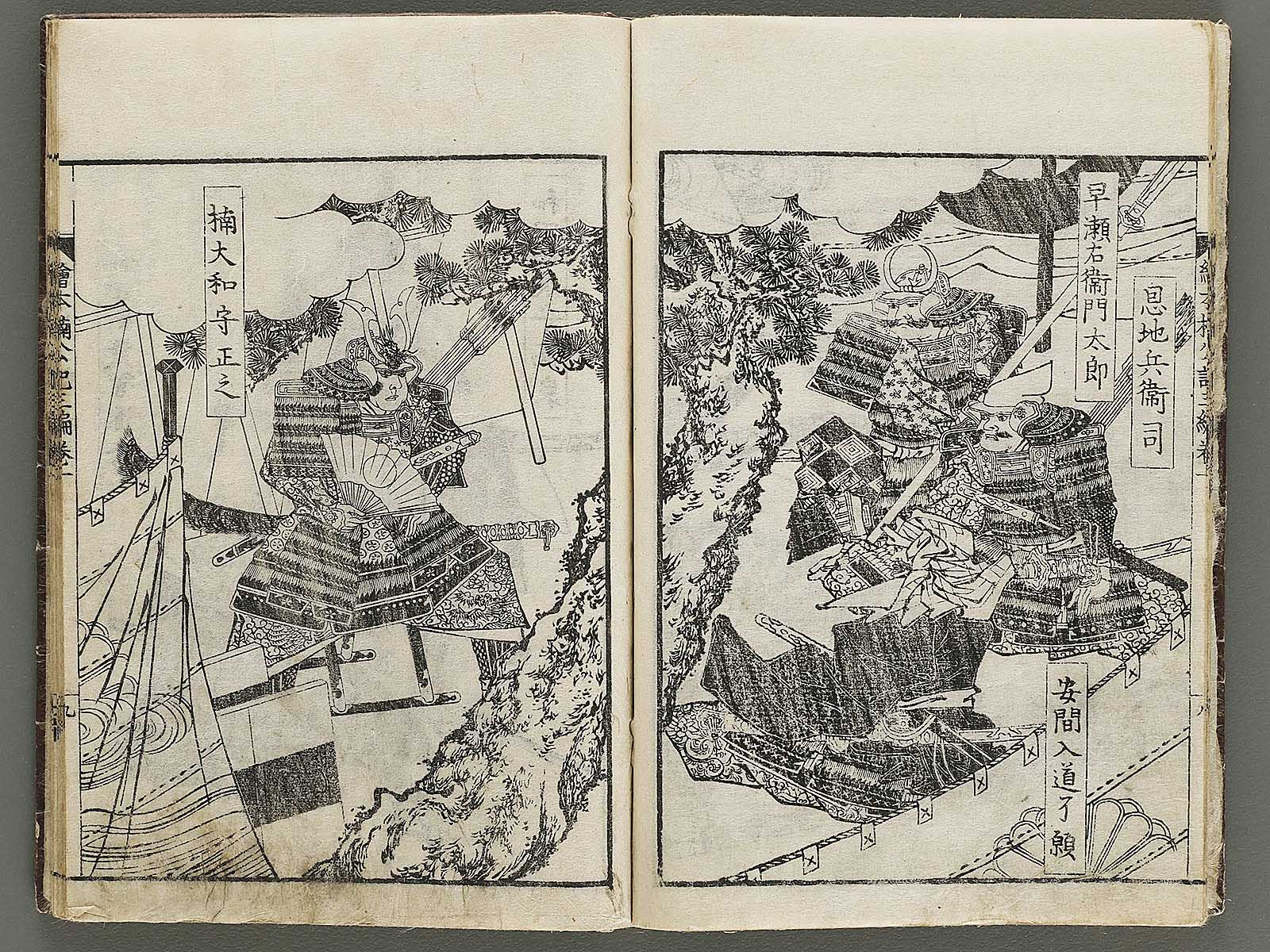 Topic : A writer in Osaka, named Yatei Yamada, produced this book with illustrations by Shungyosai Hayami who was an Ukiyo-e artist and Yomi-hon writer in the late Edo period. Total of 30 books. It summarizes and illustrates the life of a samurai lord, Masashige Kusunoki, and was popular among the people in the Edo period.
