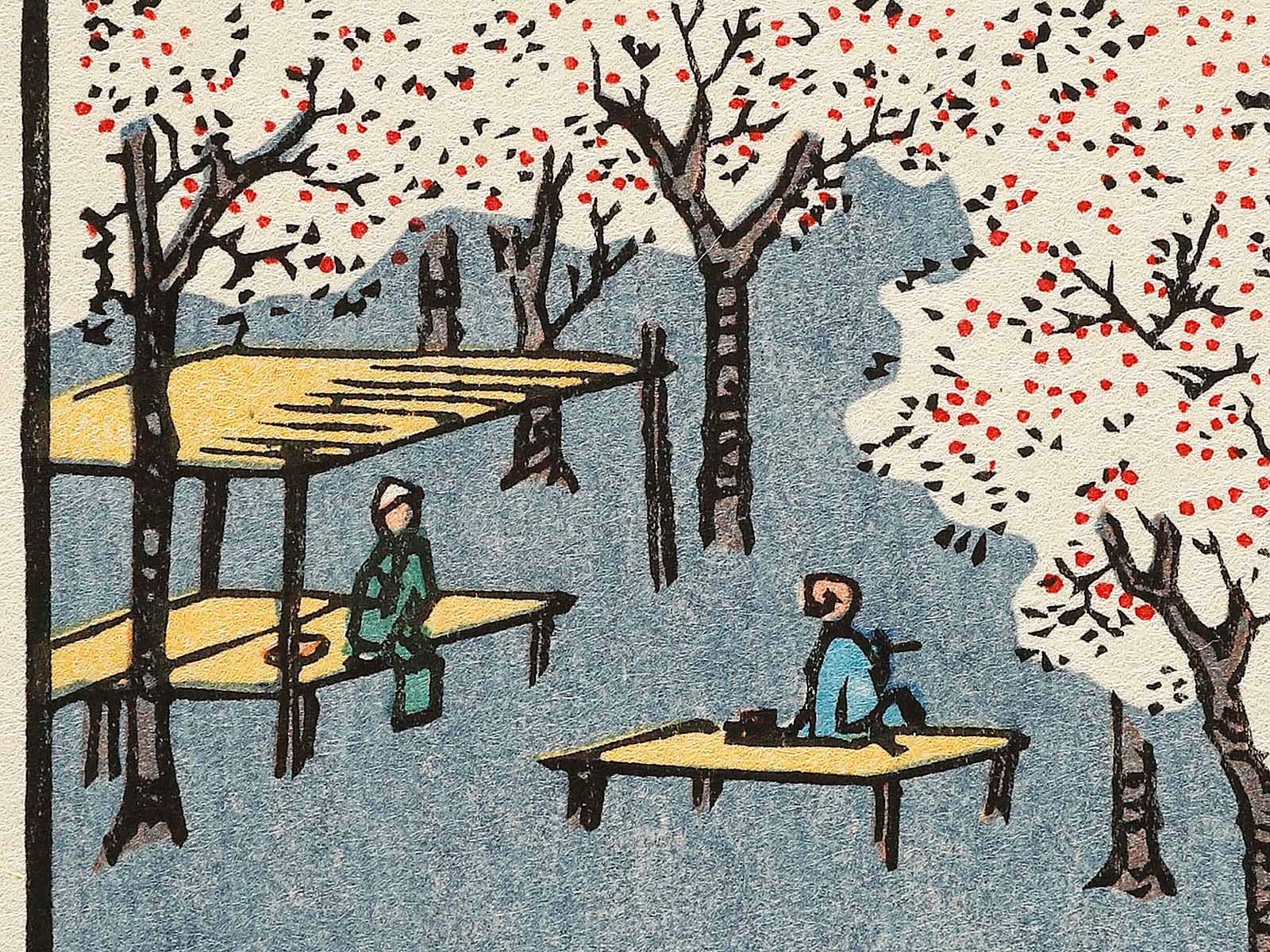 This work is a reproduction of a woodblock print, made with the same traditional printmaking processes as those used when the original was created.