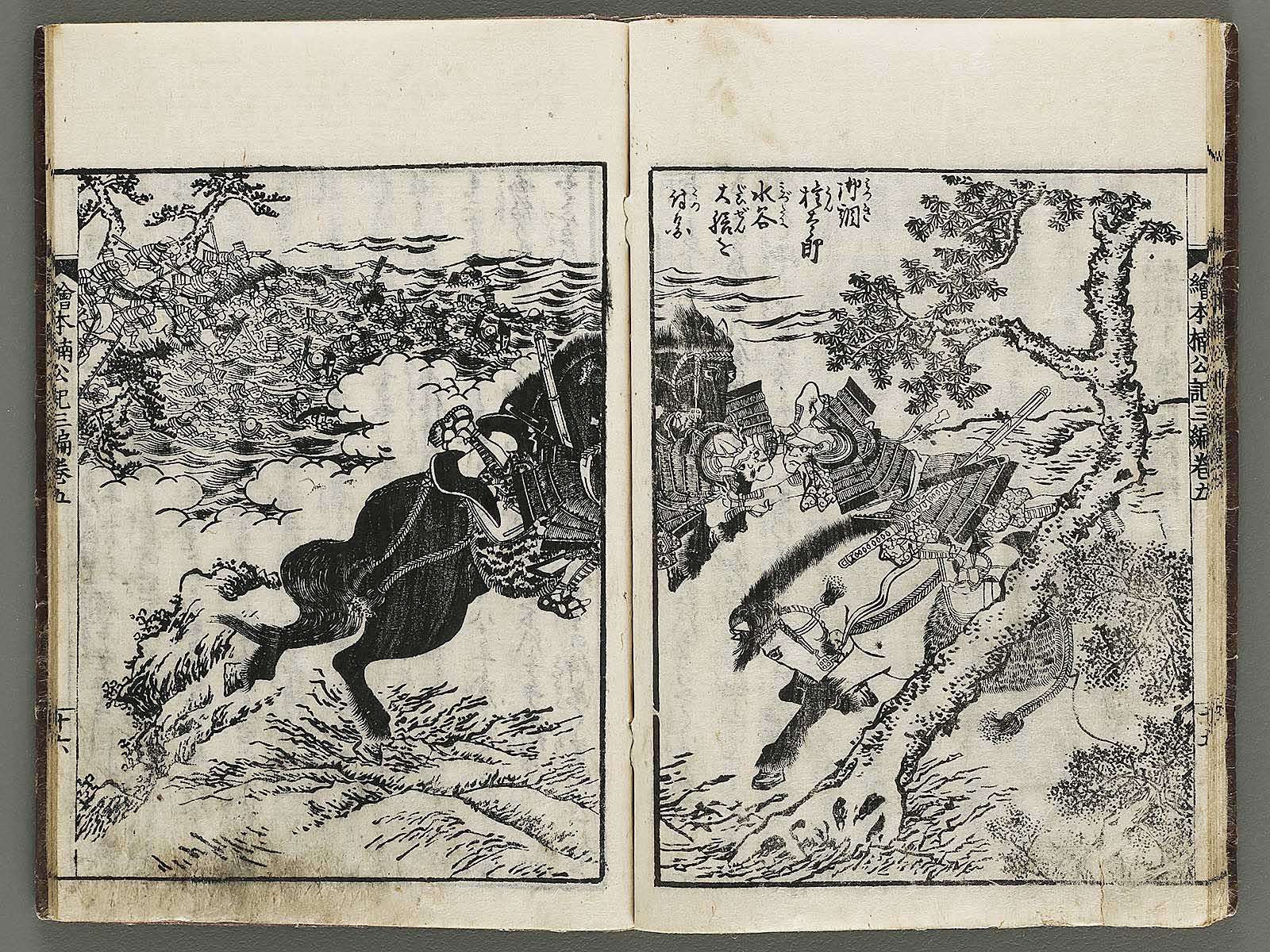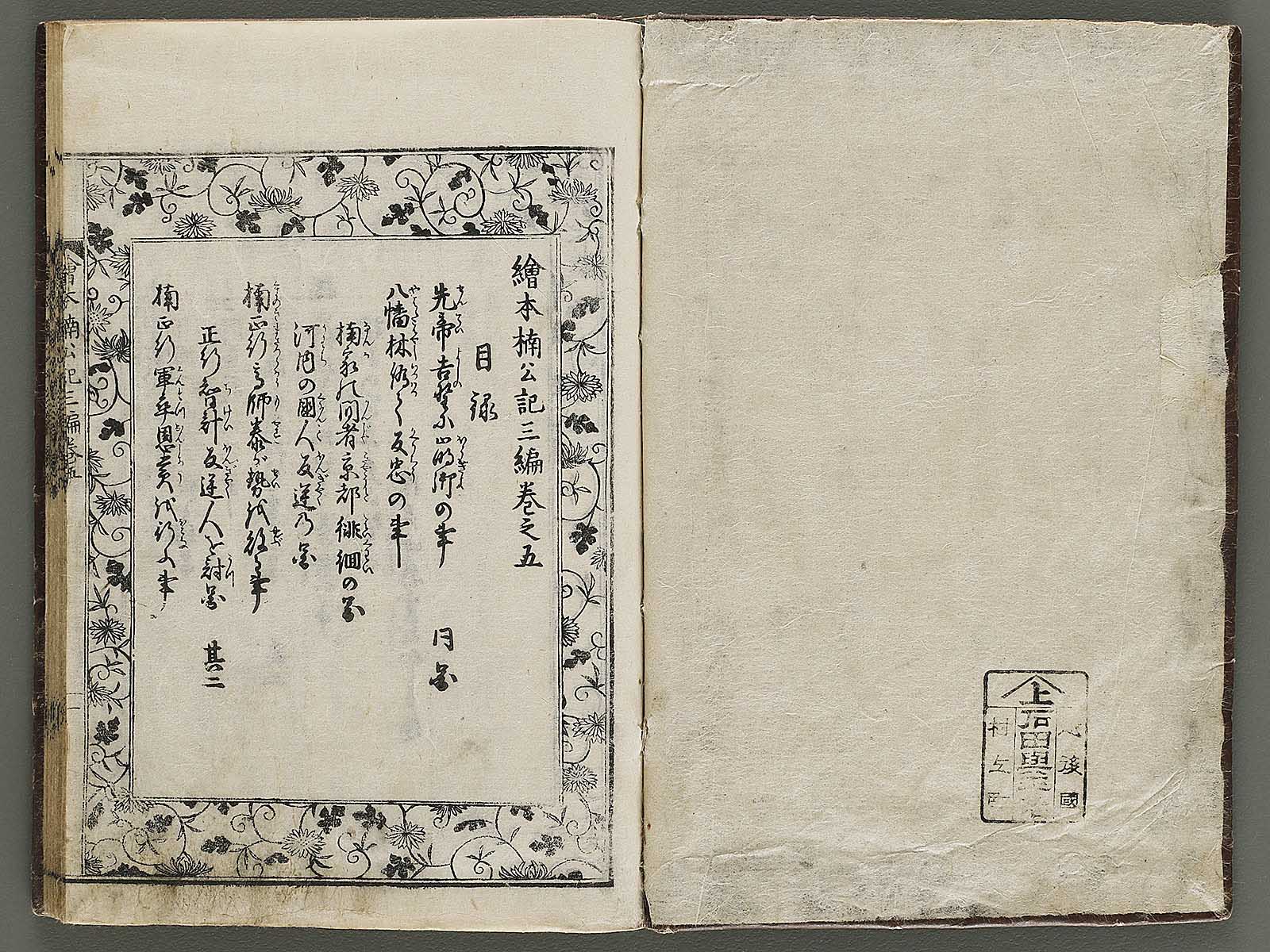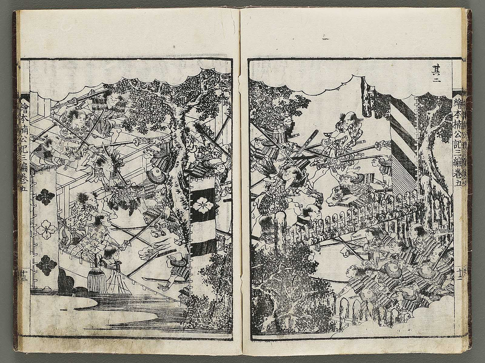Topic : A writer in Osaka, named Yatei Yamada, produced this book with illustrations by Shungyosai Hayami who was an Ukiyo-e artist and Yomi-hon writer in the late Edo period. Total of 30 books. It summarizes and illustrates the life of a samurai lord, Masashige Kusunoki, and was popular among the people in the Edo period.