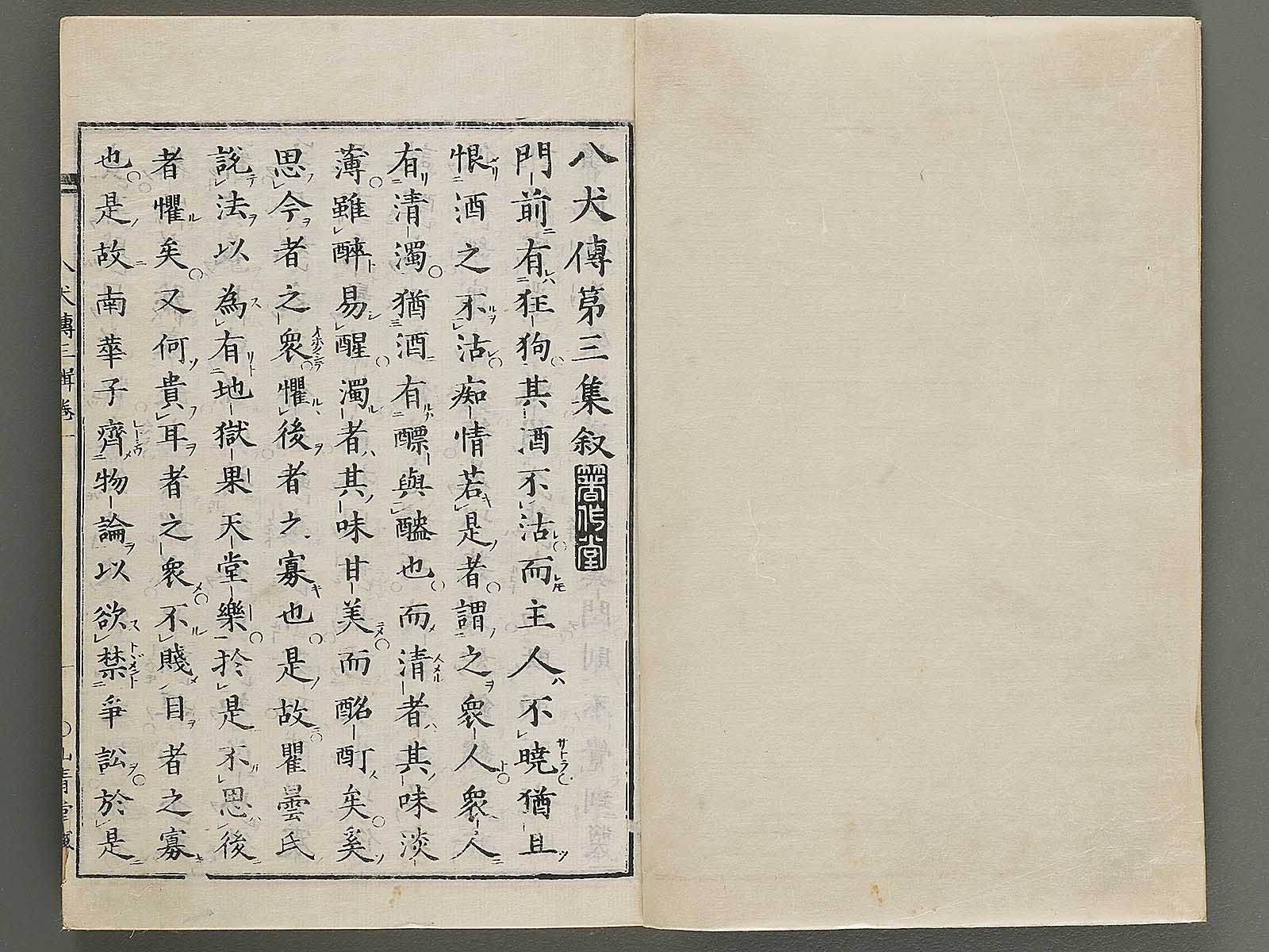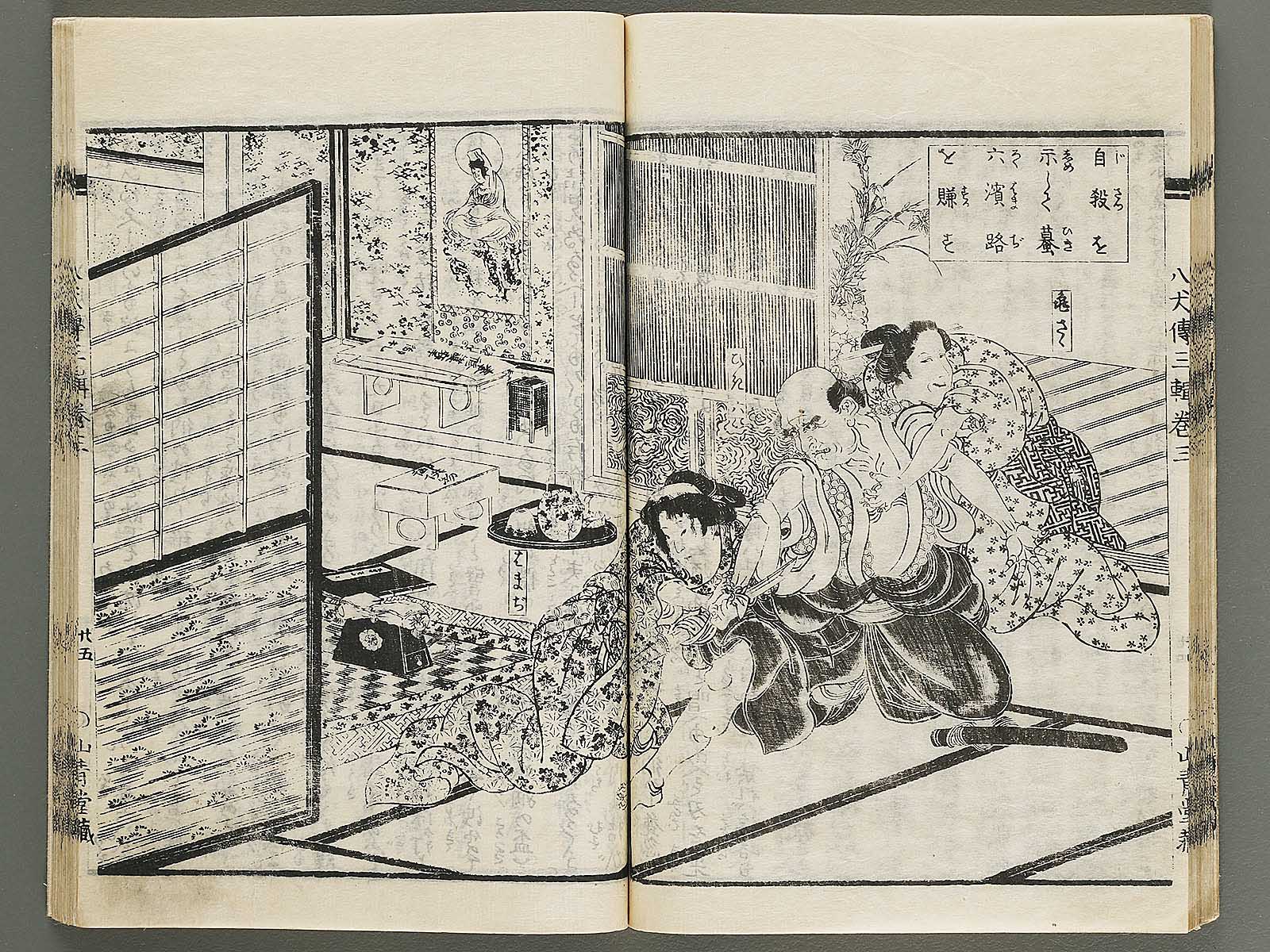 Topic : Japanese epic novel by Kyokutei Bakin. The title has been translated as The Eight Dog Chronicles.