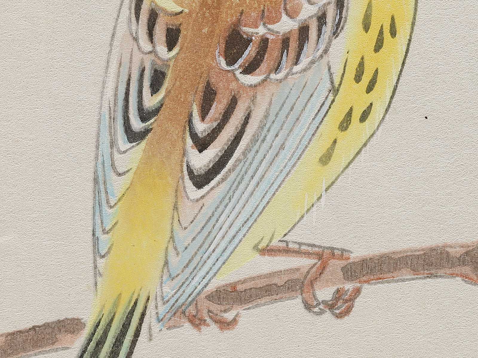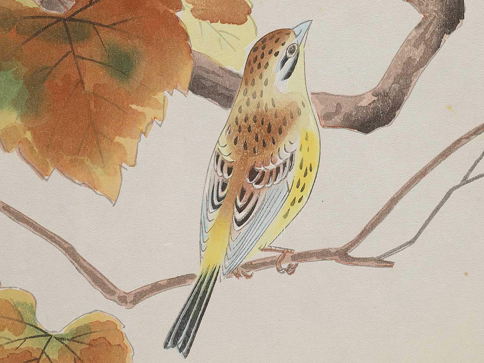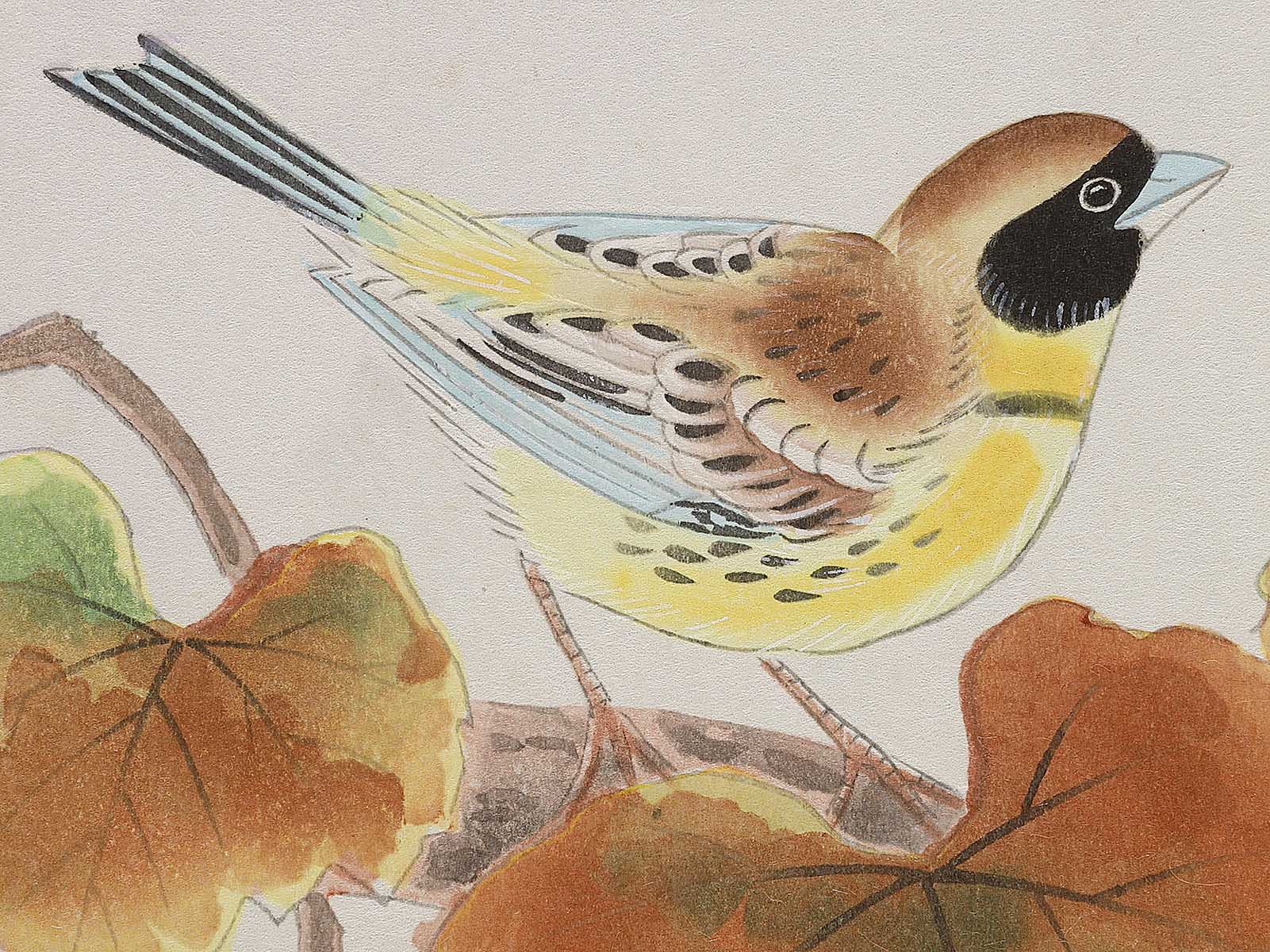 Topic : A Yellow-breasted Bunting Perched on a Grape Vine
