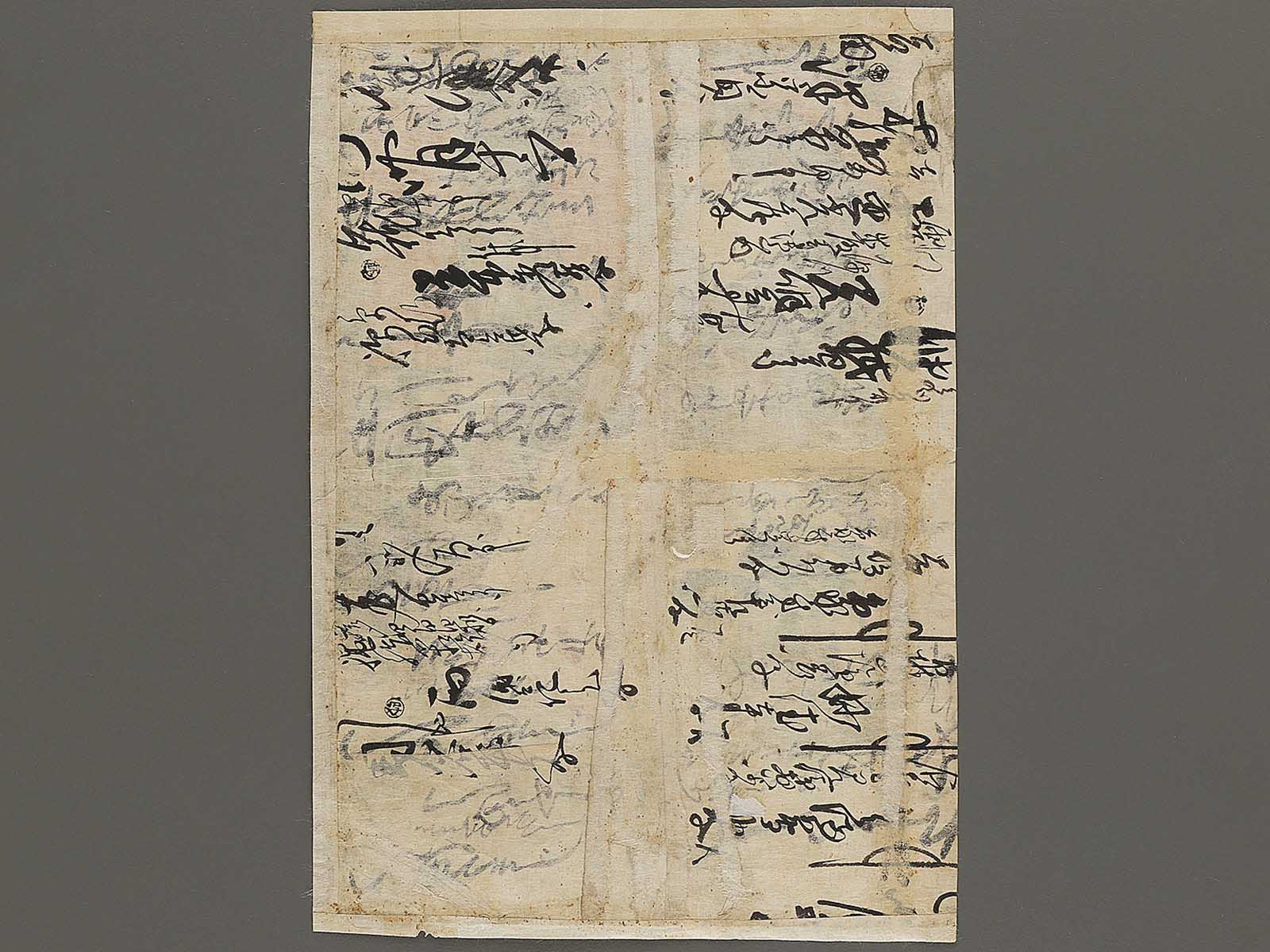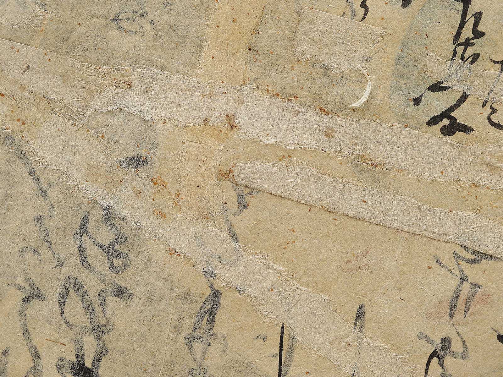 Condition : Antique item; (damaged by tear, spot, dirt, scribbles, worm-eaten holes, etc...) Please view pictures as they are a part of the description. There is reinforce with backing.(urauchi)